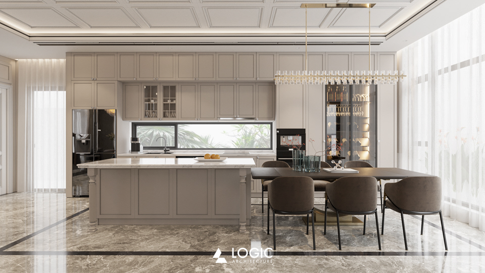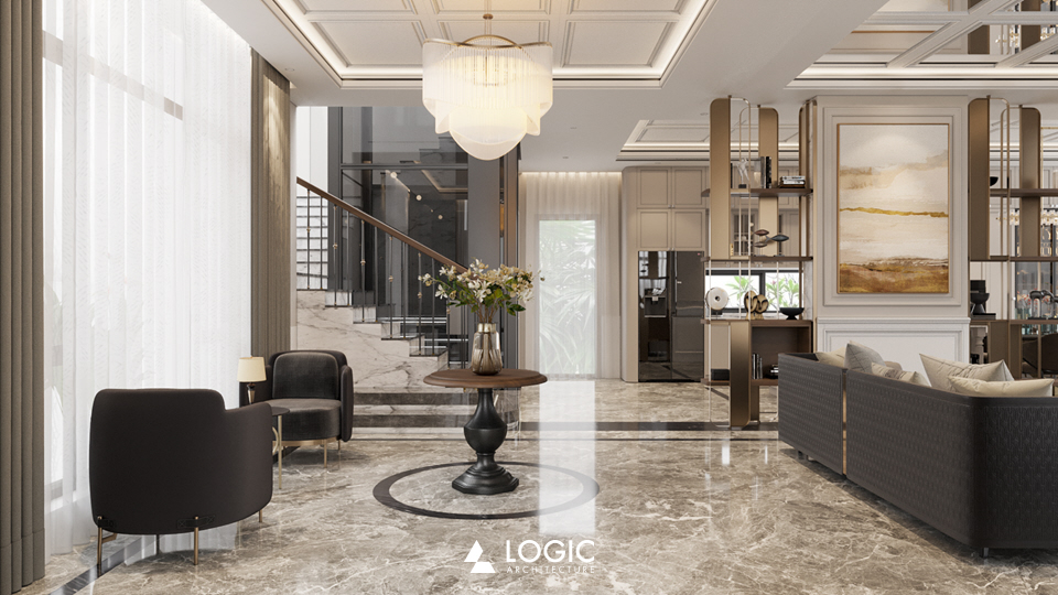 Ẩn mình giữa lòng thành phố Vinh, biệt thự sang trọng này có thiết kế nội thất tinh tế, toát lên vẻ sang trọng và tinh tế. Lối vào lớn chào đón bạn bằng chiếc đèn chùm tuyệt đẹp chiếu sáng đường vào phòng khách. Không gian được chiếu sáng bởi các cửa sổ lớn đón ánh sáng tự nhiên và mang lại cái nhìn thoáng qua về bầu trời xanh bên ngoài. Các thiết bị chiếu sáng rất độc đáo và tạo thêm nét quyến rũ cho không gian, trong khi đá nâng cao vẻ quyến rũ tổng thể của căn phòng.